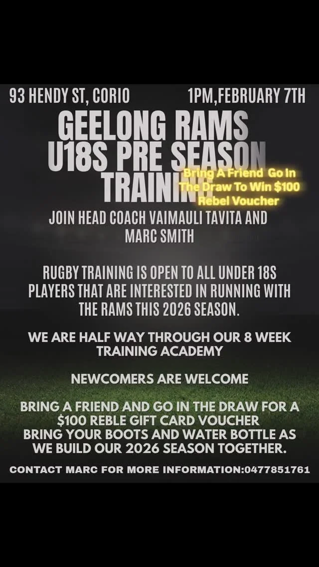 Training is back tomorrow.. One Club Together Strong The Rams Are Running This 2026 Season Boyz To Men Geelong Rugby Training Tonight 6.15pm, The Running Of The Ram Is Coming!! The Rams Are Rising The Rams Are On The Rise Grassroots Rugby in Geelong, Rams are Rising!! Training Is Back Again, Bring A Friend And Go In The Draw To Win Big!! We Are Back, Rams Are Back Thursday 5th 6.15pm Our Lambs putting on a clinic in Geelong